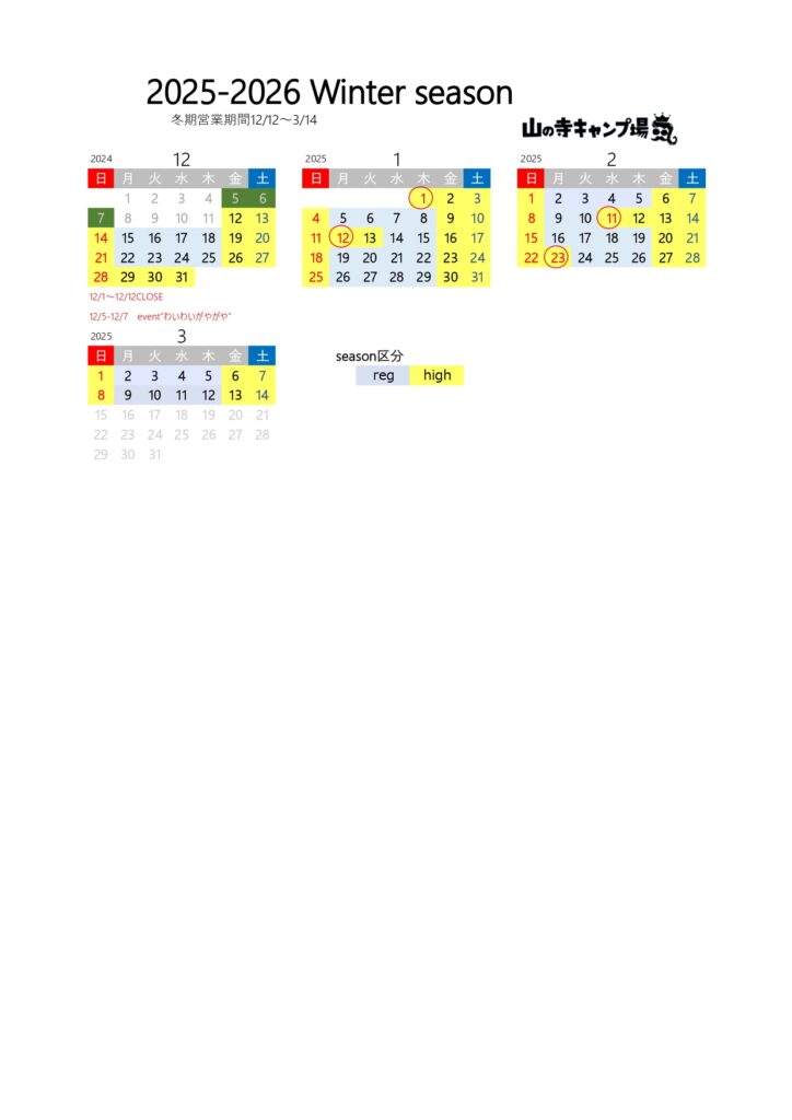 ・営業期間 12月12日(金) ~ 3月14日(土)